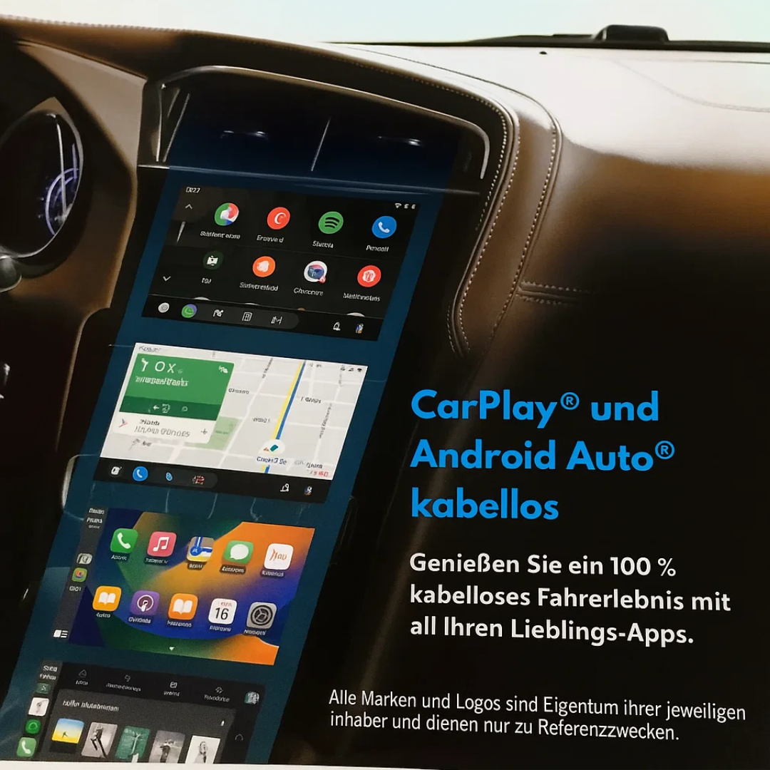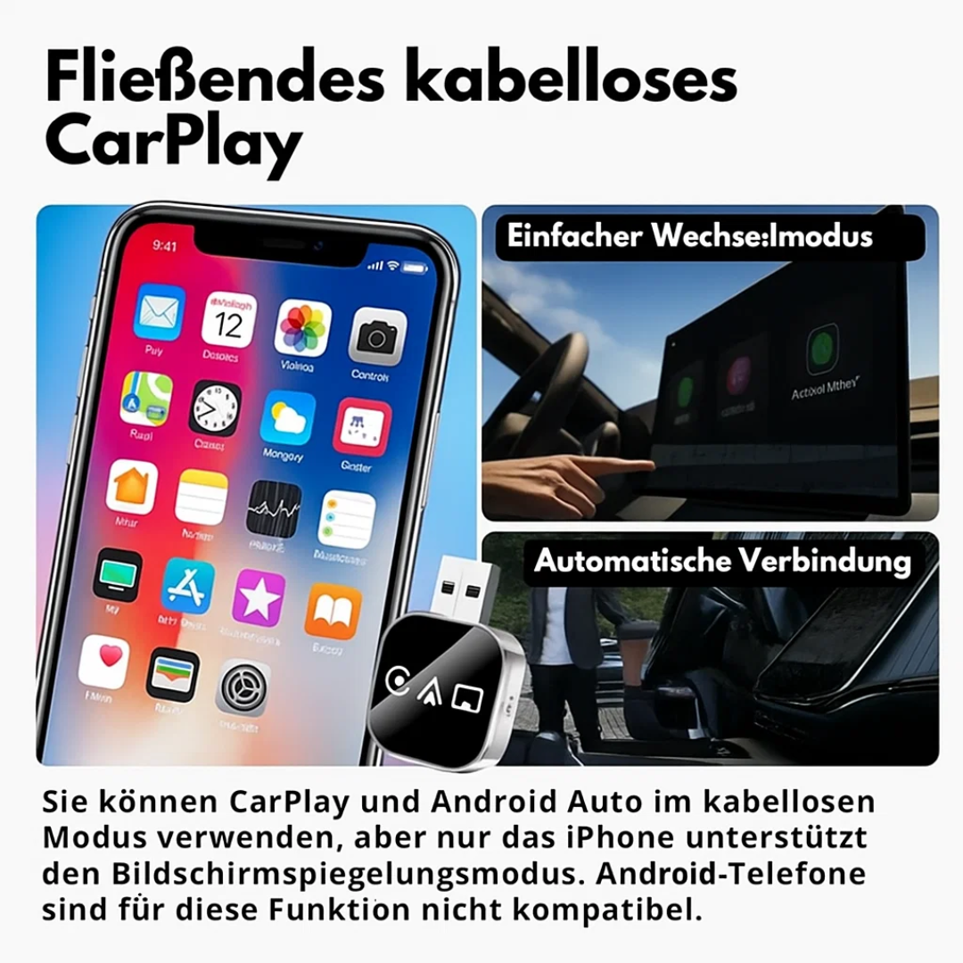 Der Wireless CarPlay Adapter 2026 (Android/Apple) wandelt Ihre kabelgebundene CarPlay-Verbindung in automatisches kabelloses CarPlay um.